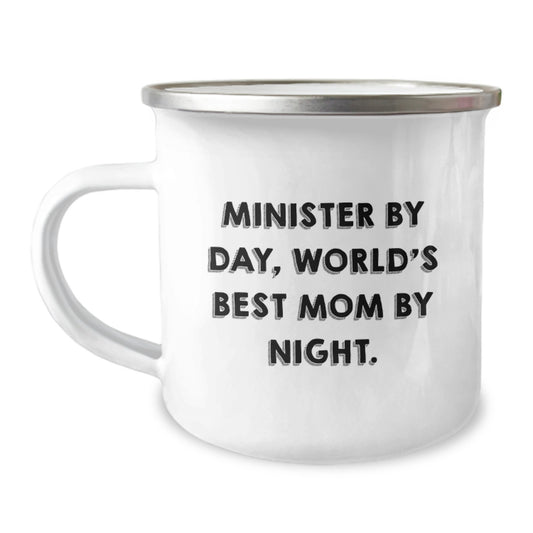 Minister Gifts from Friends and Family, Minister By Day, World's Best Mom By Night. - Funny Camping Mug for Birthday, 12 oz Stainless Steel