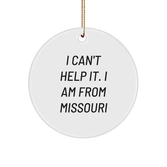 Missouri Circle Ornament Gifts from I Can't Help It. I Am From Missouri, Funny Quote White MDF Sublimation Christmas Ornament for Missouri Men Women Friends Family