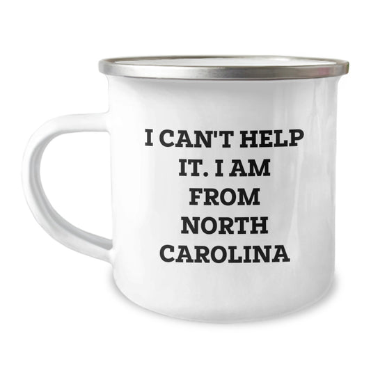 North Carolina Camping Mug Gifts from Friends and Family for Graduation, I Can't Help It. I Am From North Carolina - Funny Quote on Stainless Steel Enamel Mug