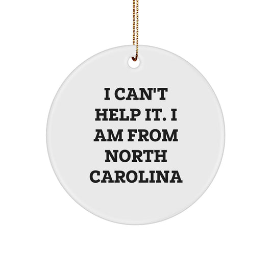 NC Proud Circle Ornament, Funny Quote Gifts from Friends to Family, I Can't Help It. I Am From North Carolina, Christmas Unique Treasures
