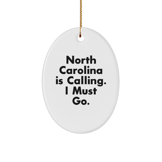 North Carolina Oval Ornament Gifts for Friends - 'North Carolina Is Calling. I Must Go.' Inspired White Oval Ornament, Christmas Unique Gift for Family, North Carolina