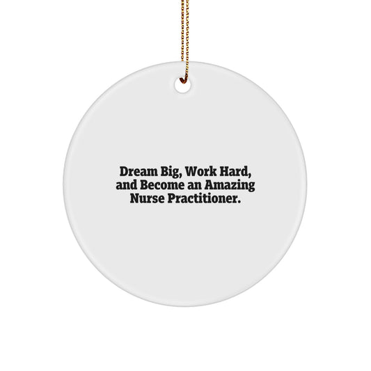 Empowering Nurse Practitioner Circle Ornaments - 'Dream Big, Work Hard, And Become An Amazing Nurse Practitioner.' Gifts from Friends, Family, or Coworkers for Nurse Practitioner