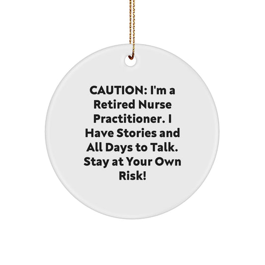 'Stay At Your Own Risk!' Funny Nurse Practitioner Circle Ornament Gifts from Family, Friends, or Coworkers for Christmas