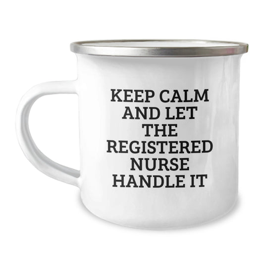 Funny Registered Nurse Gifts for Men Women Friends Coworkers Family - Camping Mug, Keep Calm And Let The Registered Nurse Handle It, Christmas Unique
