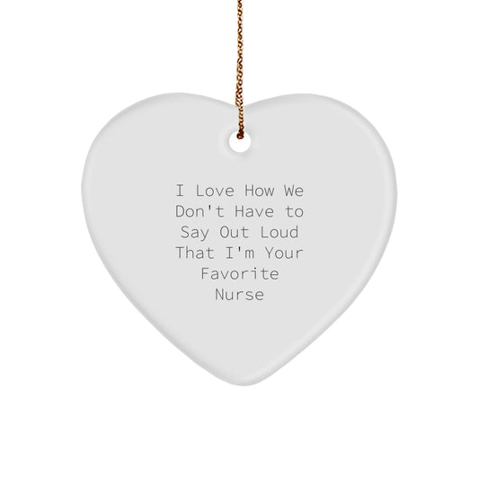 Funny Nurse Gifts from Friends and Family - Heart Ornament with 'I Love How We Don't Have To Say Out Loud That I'm Your Favorite Nurse' Quote - Christmas Unique Gifts for Nurses