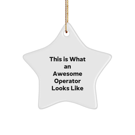 Funny Operator Gifts from Friends for Men - This Is What An Awesome Operator Looks Like Star Ornament, White, 3.25" tall, MDF & High-Gloss Finish, Perfect for Christmas