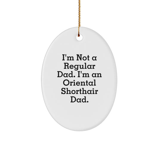'Funny' Oriental Shorthair Cat Dad Gifts for Christmas - Oval Shaped Ornament, White, with 'I'm Not A Regular Dad. I'm An Oriental Shorthair Dad.' Quote, from Friends and Family