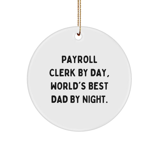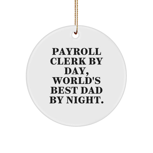 Payroll Clerk Gifts from Men, Payroll Clerk Circle Ornament by Day, World's Best Dad By Night., Funny Christmas Unique Gifts for Payroll Clerk