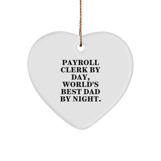 Payroll Clerk Gifts for Christmas, Funny Heart Ornament with 'Payroll Clerk By Day, World's Best Dad By Night.' Quote, Gifts from Family to Payroll Clerk