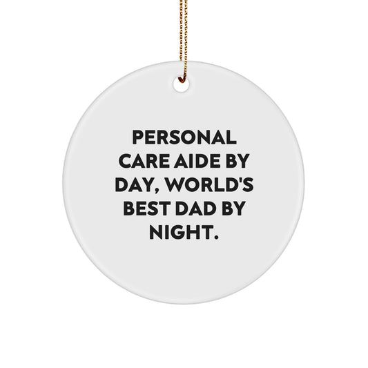 Personal Care Aide Gifts - Heart Ornament, Funny Quote, 'Personal Care Aide By Day, World's Best Dad By Night.' - Christmas Unique Gifts from Men to Personal Care Aide