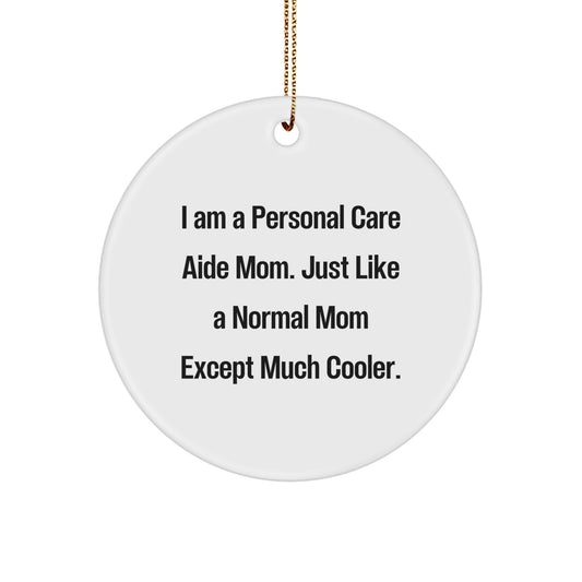 Funny Personal Care Aide Mom Gifts for Women - 'Just Like A Normal Mom Except Much Cooler' Christmas Circle Ornament - Gifts from Mom for Personal Care Aide