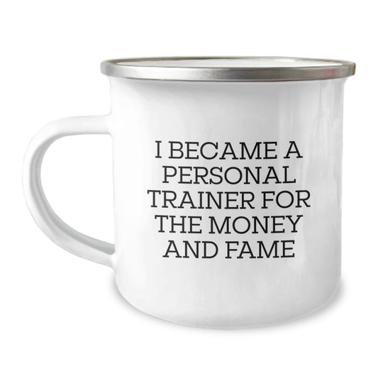 Funny Personal Trainer Gifts for Men, Unique Camping Mug for Christmas Unique Gifts from Friends to Personal Trainer, 'I Became A Personal Trainer For The Money And Fame'
