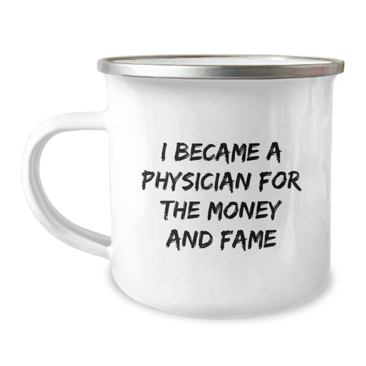 Funny Physician Gifts from Friends for Men Camping Mug - I Became A Physician For The Money And Fame - Unique Christmas Unique Gifts