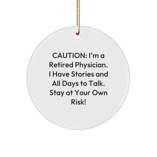 Funny Gifts from Friends for Physician Christmas Circle Ornament, Caution: I'm A Retired Physician. I Have Stories And All Days To Talk. Stay At Your Own Risk!