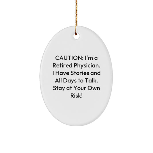 Funny Physician Gifts for Christmas - Oval Ornament from Friends - Caution: I'm A Retired Physician. I Have Stories And All Days To Talk. Stay At Your Own Risk!