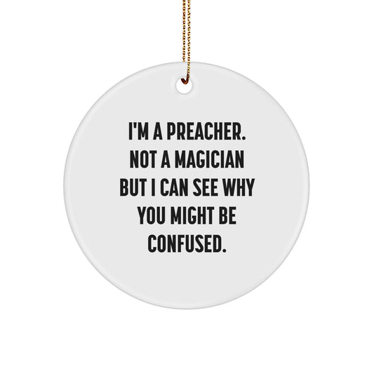 Funny Preacher Gifts for Christmas - 'I'm A Preacher. Not A Magician...' Circle Ornament from Friends, Gifts from Family