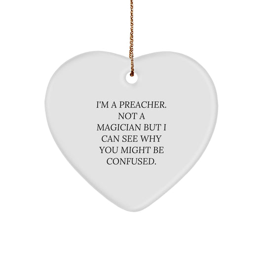 Funny Preacher Gifts from Men to Preacher, Heart Ornament for Christmas with 'I'm A Preacher. Not A Magician But I Can See Why You Might Be Confused.' Quote, Unique Present for Preacher's Family