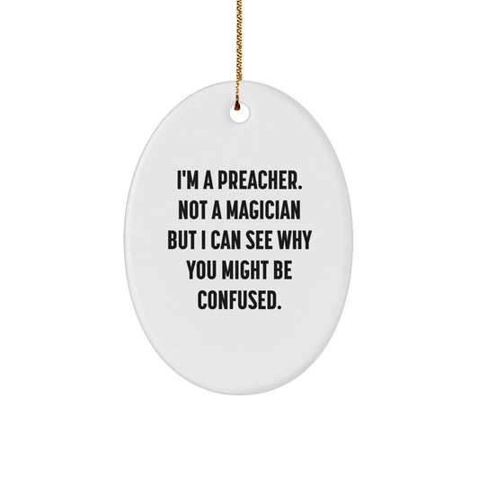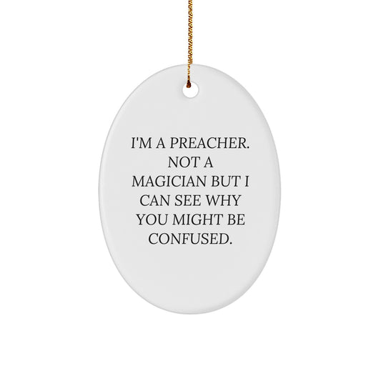 Funny Preacher Gifts from Friends - I'm A Preacher. Not A Magician But I Can See Why You Might Be Confused. Oval Ornament for Preachers