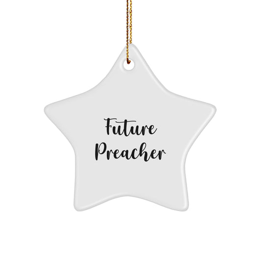 Funny Preacher Gifts for Christmas - 'Future Preacher' Star Ornament, White, 3.25" Tall, Durable MDF with High-Gloss Finish - Gifts from Family to Preacher