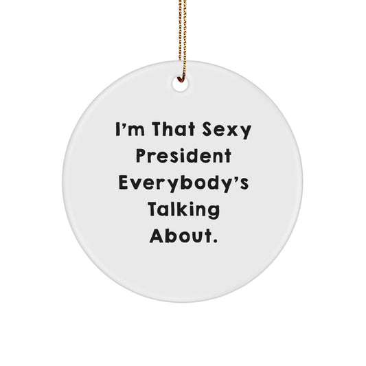 Funny President Circle Ornament, I'm That Sexy President Everybody's Talking About Gifts for Men, White Circle Shaped Ornament, Christmas Unique Gifts from Friends