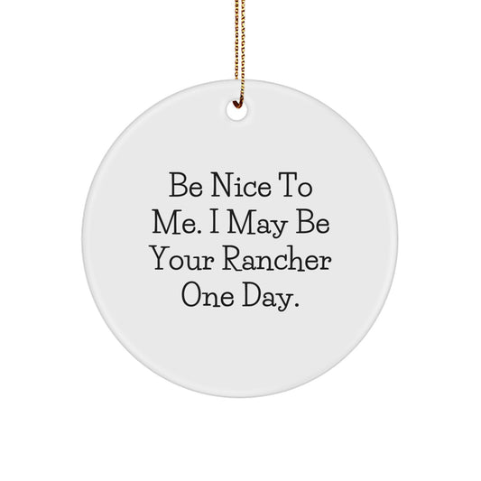 Funny Rancher Gifts from Friends for Men, Unique Circle Ornament for Christmas, Be Nice To Me. I May Be Your Rancher One Day.