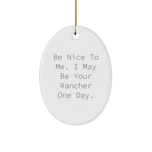 Funny Rancher Gifts for Men, Oval Ornament, Be Nice To Me, Christmas Unique Presents from Family to Friends
