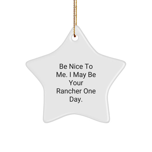 Funny Gift for Rancher, Star Ornament Christmas Unique Gifts from Friends and Family to Rancher, 'Be Nice To Me. I May Be Your Rancher One Day.'