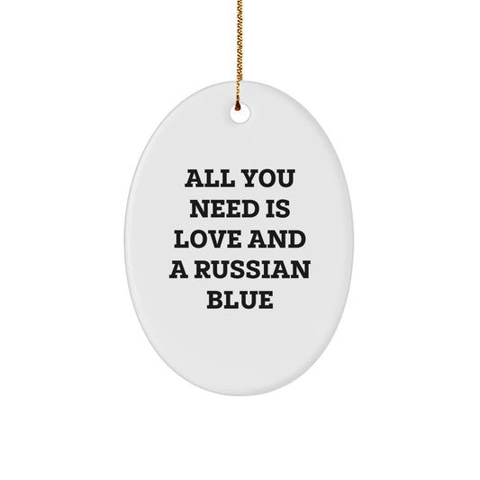 Russian Blue Cat Gifts from Men - All You Need Is Love And A Russian Blue Oval Ornament for Christmas, Gifts for Russian Blue Cat Lovers