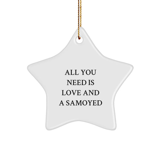 Samoyed Dog Gifts from Friends and Family, Star Ornament for Christmas, 'All You Need Is Love And A Samoyed' Quote, Funny and Cute Dog Lover Decor