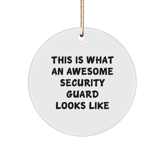 Security Guard Circle Ornament Gift for Men Friends Family - 'This Is What An Awesome Security Guard Looks Like' Funny Christmas Decoration
