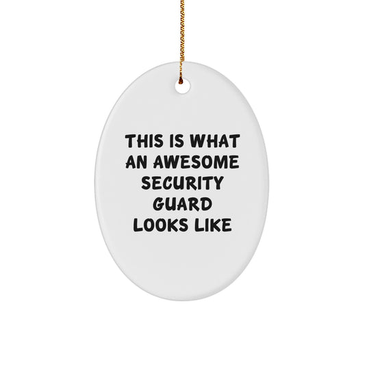 Funny Security Guard Gifts from Friends, 'This Is What An Awesome Security Guard Looks Like', Oval Ornament for Christmas
