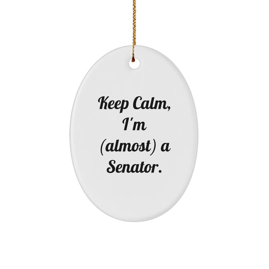 Funny Senator Oval Ornament - Gifts from Friends for Christmas Unique Gift, Keeps Calm I'm almost A Senator Quote