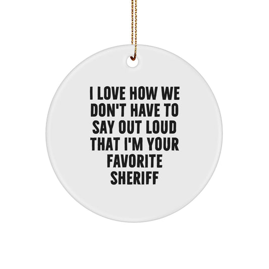 Funny Sheriff Gifts for Men from Friends - Circle Ornament with 'I Love How We Don't Have To Say Out Loud That I'm Your Favorite Sheriff' Quote for Christmas