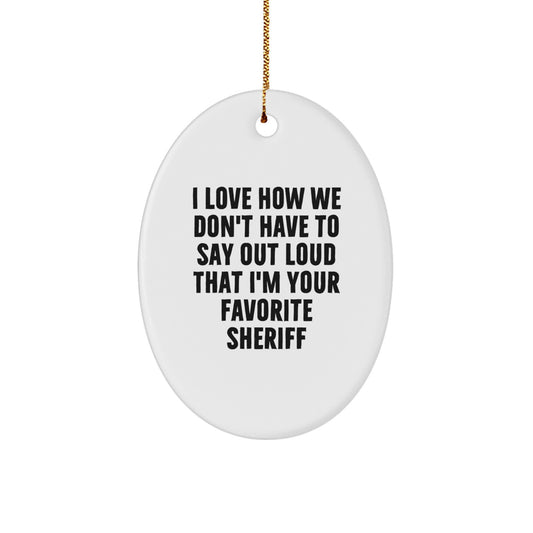 Funny Sheriff Gifts, Sheriff Oval Ornament, 'I Love How We Don't Have To Say Out Loud That I'm Your Favorite Sheriff', Gifts from Men to Sheriff, Christmas Unique Gifts