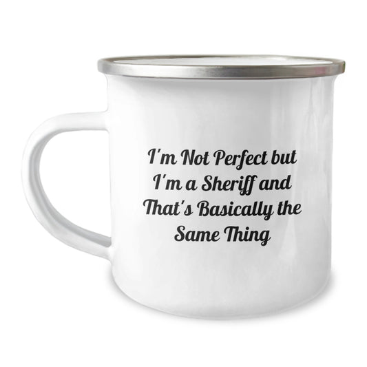 Funny Sheriff Gifts for Men - 'I'm Not Perfect But I'm A Sheriff' Camping Mug, Birthday Unique Gifts from Friends