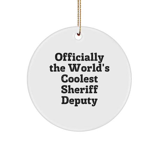 Funny Sheriff Deputy Circle Ornament, Gifts from Family, Friends, or Coworkers for Sheriff Deputy, Christmas Unique Gifts, 'Officially The World's Coolest Sheriff Deputy'