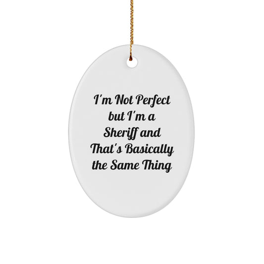 Funny Sheriff Gifts for Men, Oval Ornament with 'I'm Not Perfect But I'm A Sheriff And That's Basically The Same Thing' Quote, Christmas Memorable Present from Friends