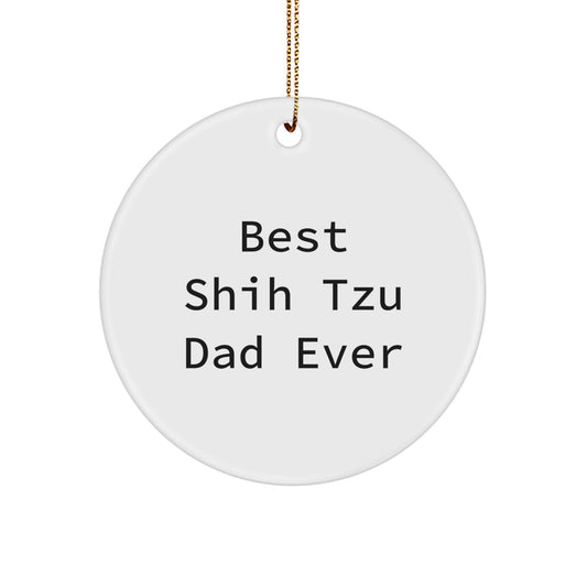 Shih Tzu Dog Gifts for Men, Funny 'Best Shih Tzu Dad Ever' Circle Ornament, White, Christmas Unique Gifts from Family