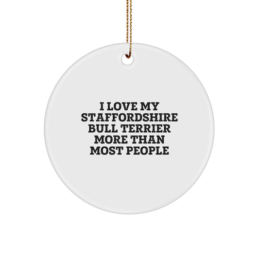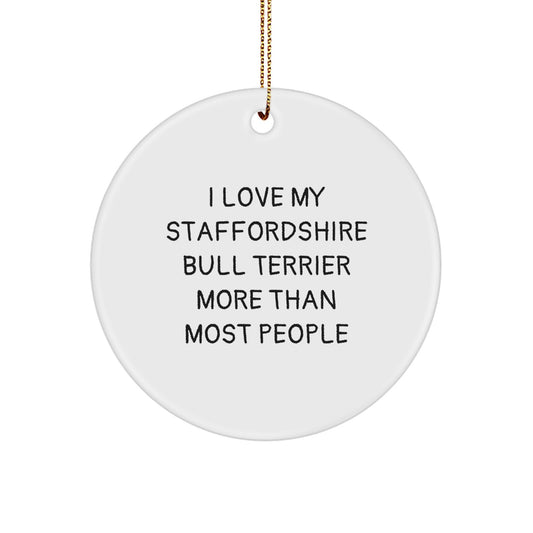 Staffordshire Bull Terrier Dog Lovers Gifts for Friends - 'I Love My Staffordshire Bull Terrier More Than Most People' Circle Ornament for Christmas