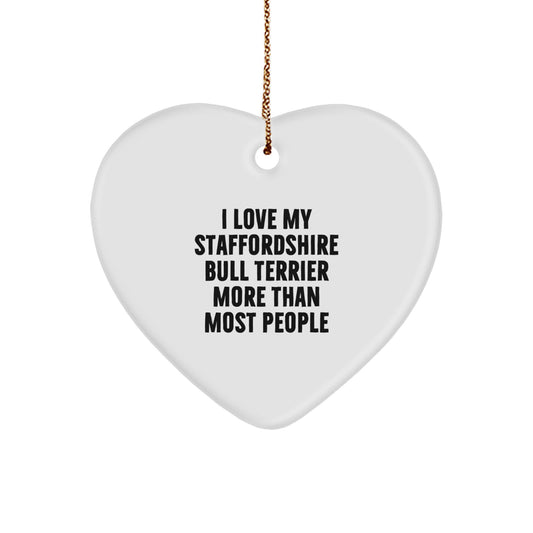 Staffordshire Bull Terrier Dog Lovers Heart Ornament Gifts from Friends to Family, 'I Love My Staffordshire Bull Terrier More Than Most People' Christmas Unique Gifts