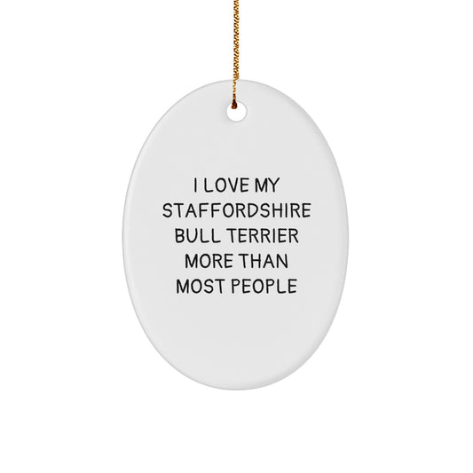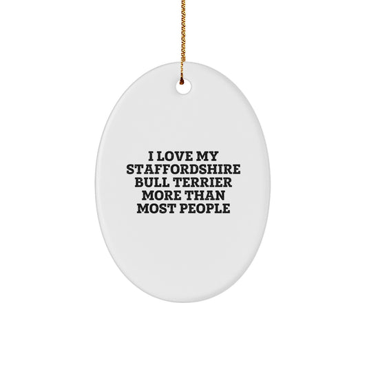 Staffordshire Bull Terrier Dog Lovers Gifts from Friends - I Love My Staffordshire Bull Terrier More Than Most People Oval Ornament for Christmas
