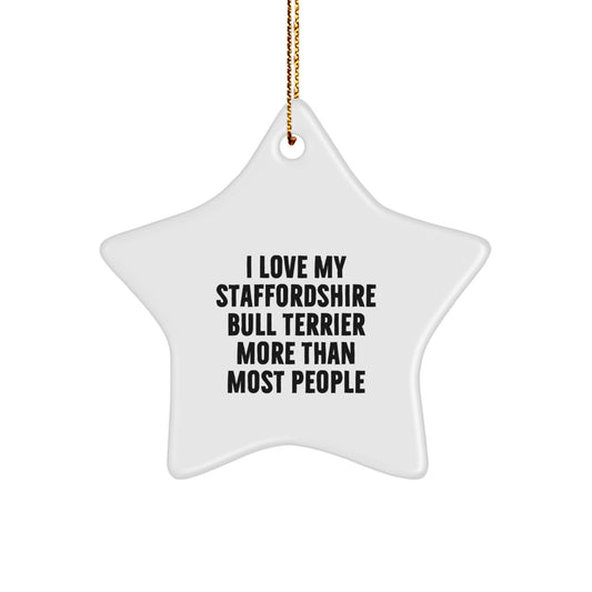 'I Love My Staffordshire Bull Terrier More Than Most People' Gifts from Family to Staffordshire Bull Terrier Dog, Star Ornament for Christmas, Unique Present for Men or Women