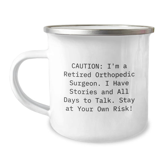 Funny Gifts from Family to Orthopedic Surgeon Friends - Camping Mug for Men - Caution: I'm A Retired Orthopedic Surgeon. I Have Stories And All Days To Talk. Stay At Your Own Risk!