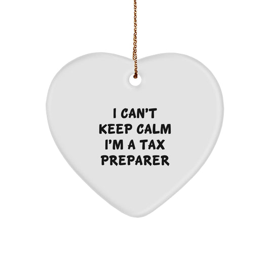 Funny Tax Preparer Gifts from Friends for Christmas with I Can't Keep Calm I'm A Tax Preparer Heart Ornament, White Color, MDF Material