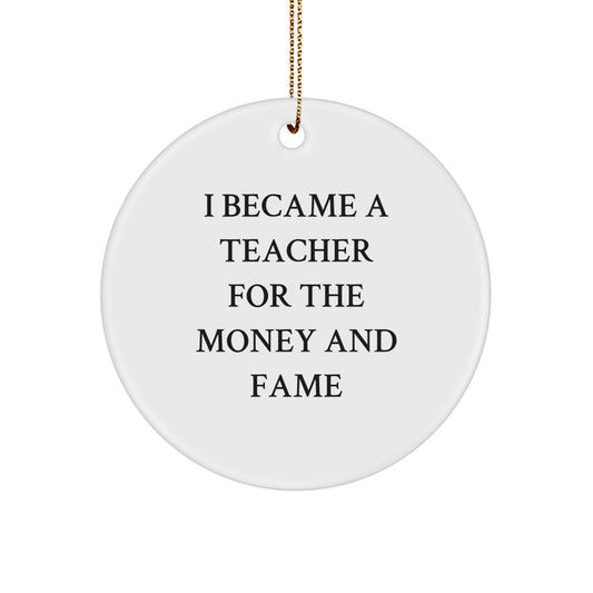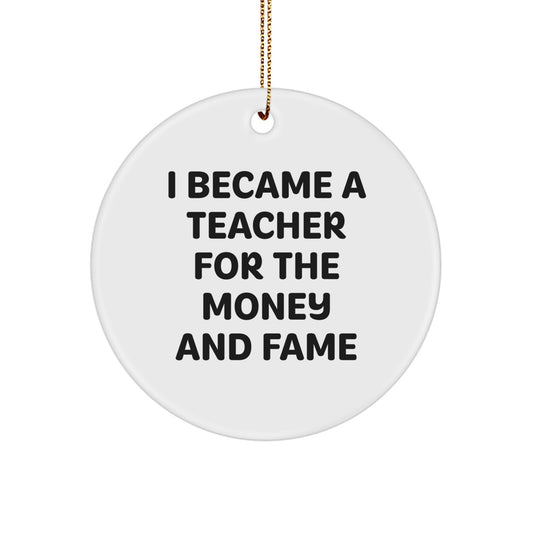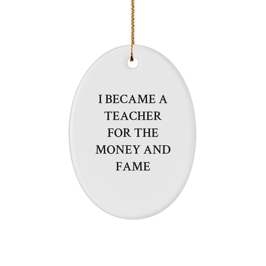 Funny Teacher Gifts for Men or Women, Oval Ornament, I Became A Teacher For The Money And Fame, Christmas Unique Presents