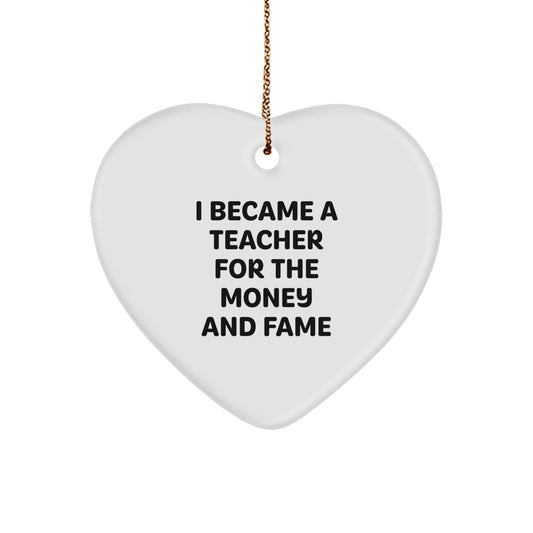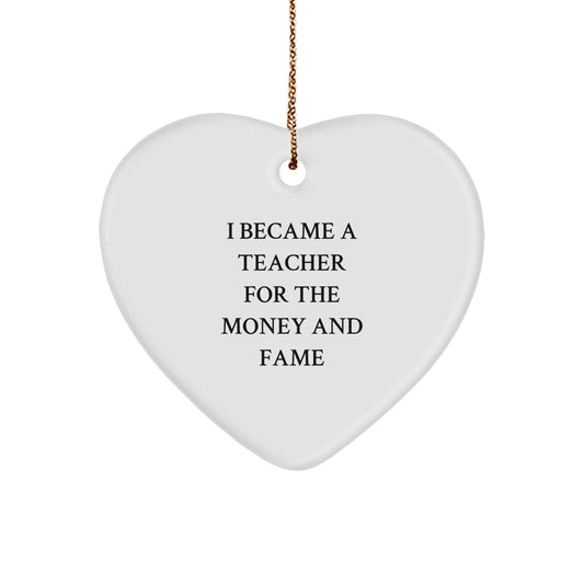 Funny Teacher Gifts for Him - I Became A Teacher For The Money And Fame Heart Ornament, Unique Teacher Christmas Unique Gifts from Friends, Cute Teacher Decorations for Home Office Desk