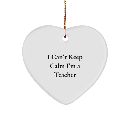 Funny I Can't Keep Calm I'm A Teacher Heart Shaped Ornament Gifts for Teacher from Friends, Lovely Christmas Unique Gifts for Teacher