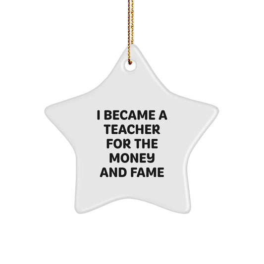 Funny Quote Teacher Gifts from Men for Christmas Unique Star Ornament, Cute Teacher Gifts for Men, Inspirational Star Ornament for Teacher, 'I Became A Teacher For The Money And Fame'