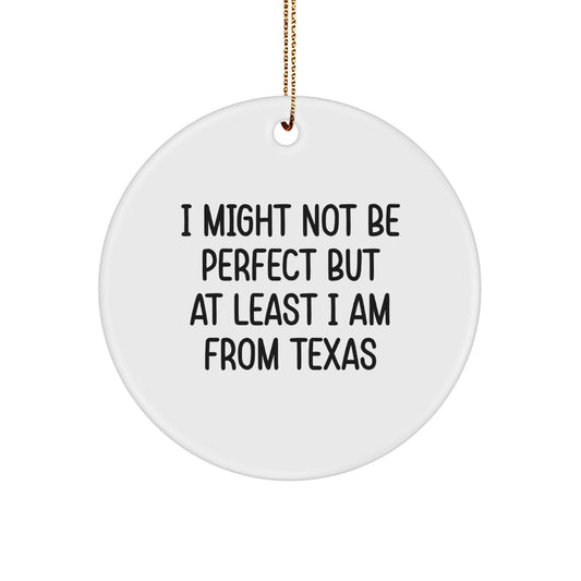 Texas Inspired Funny Circle Ornament Gifts from Friends and Family, 'I Might Not Be Perfect But At Least I Am From Texas' Christmas Ornament