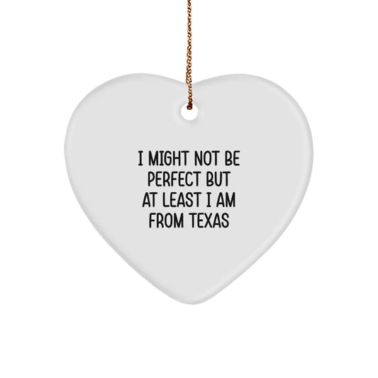 Funny Texas Heart Ornament Gifts from Friends and Family for Christmas, 'I Might Not Be Perfect But At Least I Am From Texas' quote, Texas Gifts for Men and Women